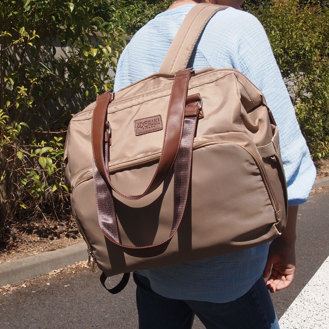 Große Tasche, die unten in die Tasche passt, um die Schuhe des Babys oder die wenigen Habseligkeiten von Mama und Papa separat aufzubewahren.